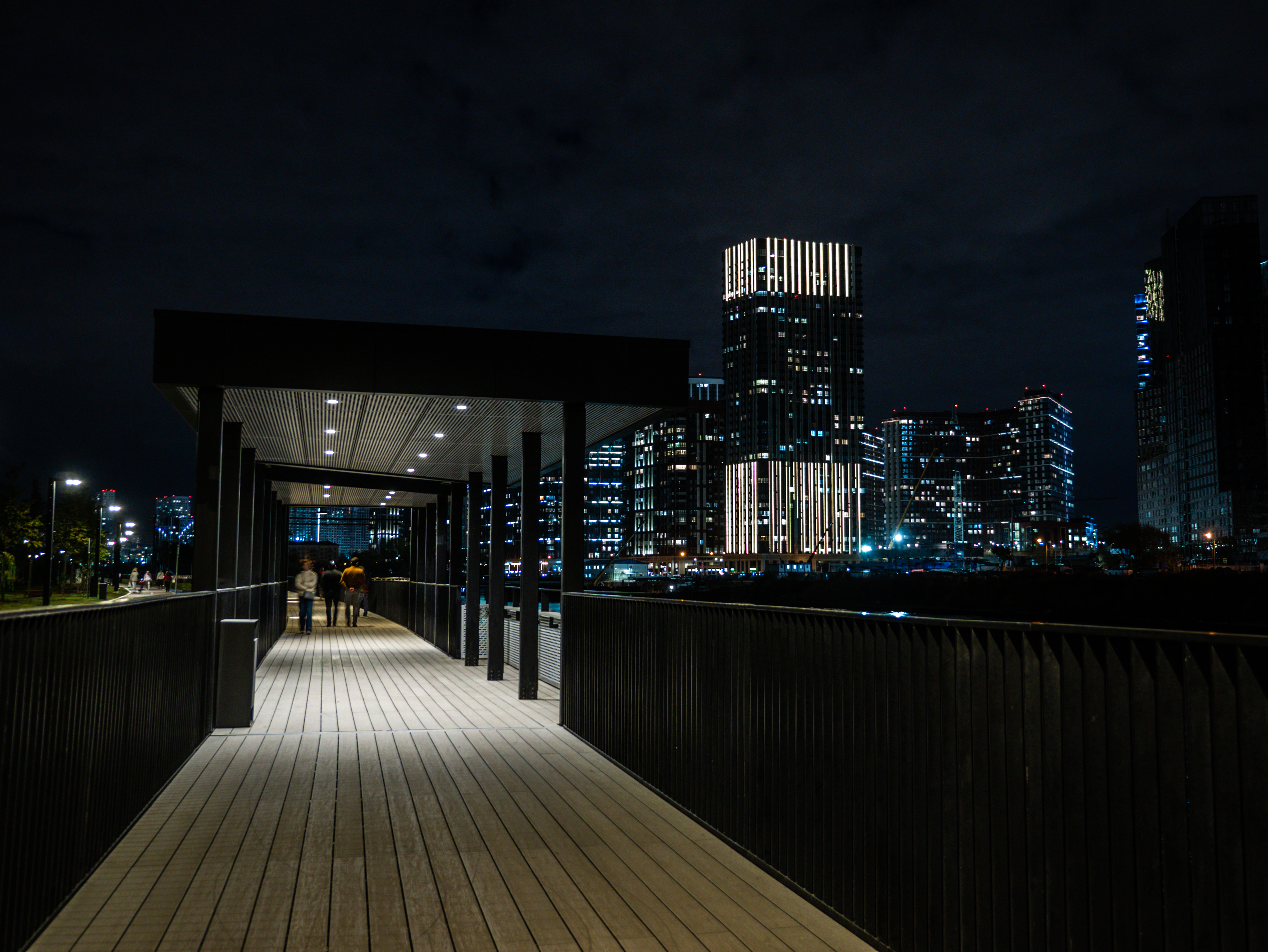 Городская набережная полностью пешеходная, здесь предусмотрена смотровая зона с видом на городские пейзажи и «Москву-Сити». Территория променада зонирована с учетом активного и тихого вида отдыха, проложена сеть велодорожек.