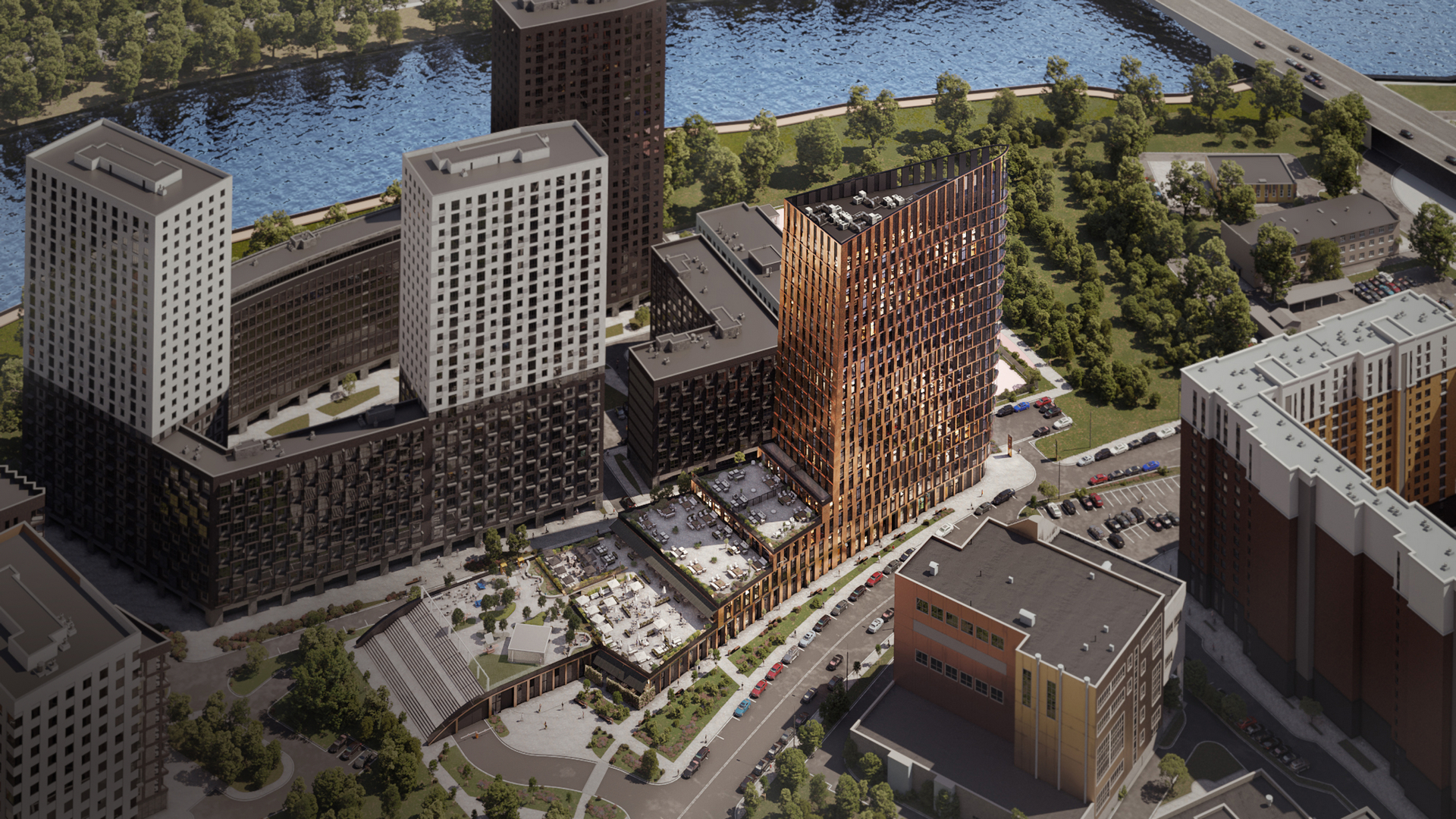 На эксплуатируемой кровле 1-го этажа располагается общественная благоустроенная терраса с wellness-пространством, где можно провести переговоры на открытом воздухе, найти вдохновение для решения новых бизнес-задач, отдохнуть с коллегами в перерыве.